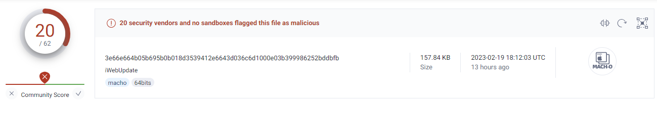 In this article, I aim to supplement and organize some points that were not explained in the aforementioned blog. The malware was not specifically generated for the ARM architecture and is formatted for x86_64. It first appeared as early as 2018. Interestingly, the name “iweb” can be found on Google as a website development tool from Apple, but it is no longer maintained.