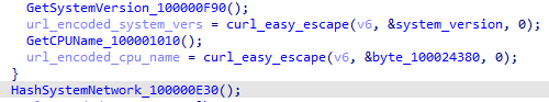 iWebUpdate collected two types of information: system version and CPU name. The values were obtained as follows, and then the MAC address of the system’s network was extracted and hashed.