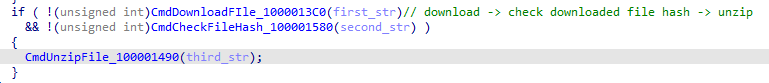 The special thing about the unzip command is that it includes file downloads, and the URL in this part is not hardcoded but can be dynamically adjusted, allowing attackers to place the malware on other URLs.